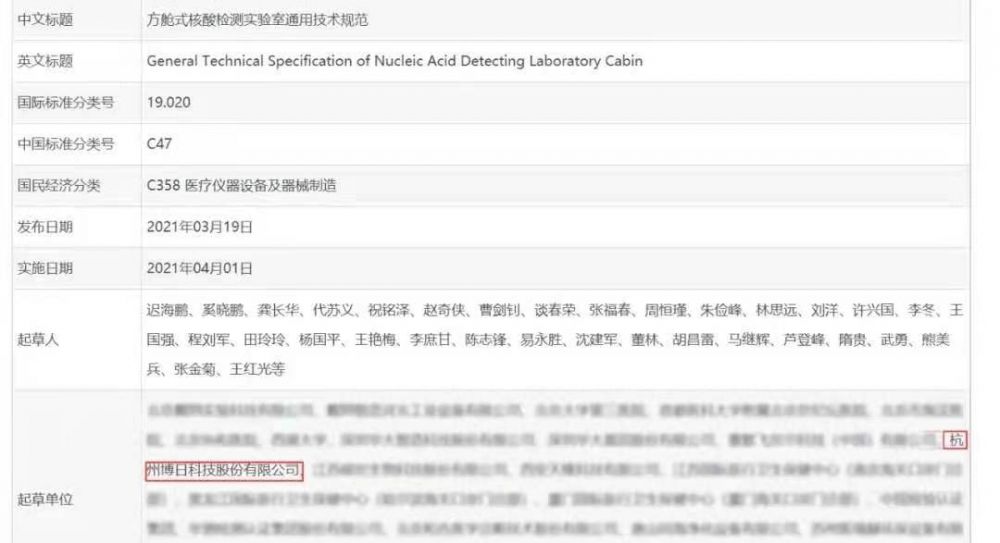 2021年3月22日,中國(guó)出入境檢驗(yàn)檢疫協(xié)會(huì)召開團(tuán)體標(biāo)準(zhǔn)發(fā)布座談會(huì),正式發(fā)布全球首個(gè)《方艙式核酸檢測(cè)實(shí)驗(yàn)室通用技術(shù)規(guī)范》(標(biāo)準(zhǔn)編號(hào)T/CIQA 16 - 2021)和《移動(dòng)式核酸檢測(cè)實(shí)驗(yàn)室通用技術(shù)規(guī)范》(標(biāo)準(zhǔn)編號(hào)T/CIQA 17 - 2021)2項(xiàng)團(tuán)體標(biāo)準(zhǔn)。