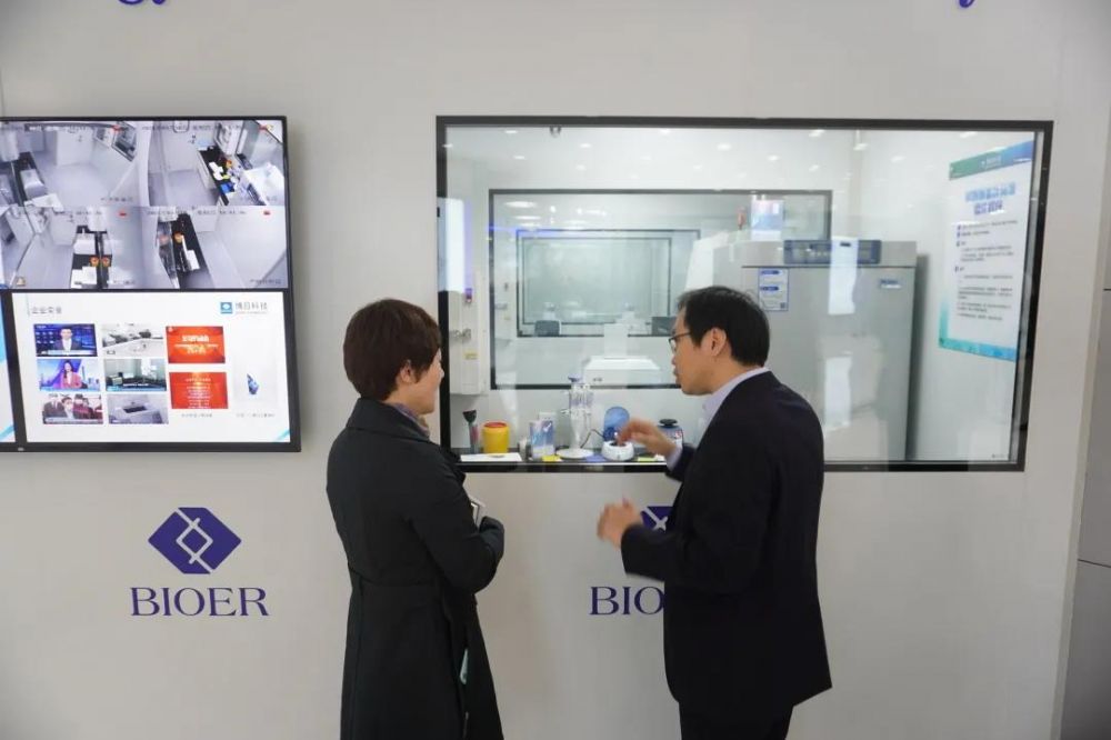 余??偨?jīng)理向錢毓軍局長介紹標(biāo)準(zhǔn)PCR實驗室
