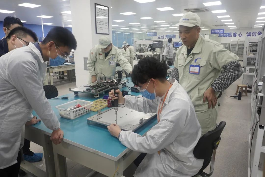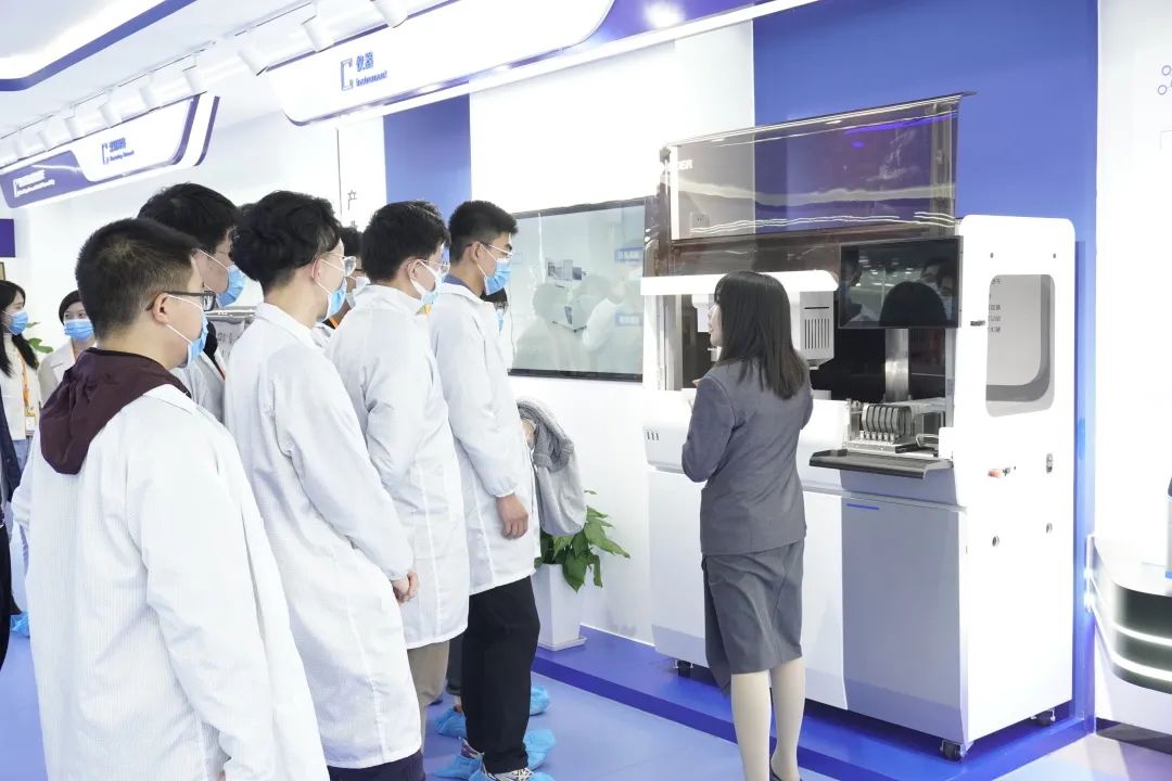 博日科技儀器產(chǎn)品管線擁有從產(chǎn)品策劃、設(shè)計(jì)、調(diào)試、驗(yàn)證直至量產(chǎn)的標(biāo)準(zhǔn)化研發(fā)流程,凝聚了電氣、軟件、結(jié)構(gòu)等多方面專業(yè)人才的研發(fā)團(tuán)隊(duì),在溫度控制、光電檢測(cè)、自動(dòng)化控制等方面擁有獨(dú)到的技術(shù)優(yōu)勢(shì)。此次參訪,在熒光定量PCR儀、核酸提取純化儀的組裝和調(diào)試車間,同學(xué)們系統(tǒng)性地了解了熒光定量PCR儀原理、運(yùn)行過程,課堂上的知識(shí)得到了生動(dòng)的展現(xiàn)。