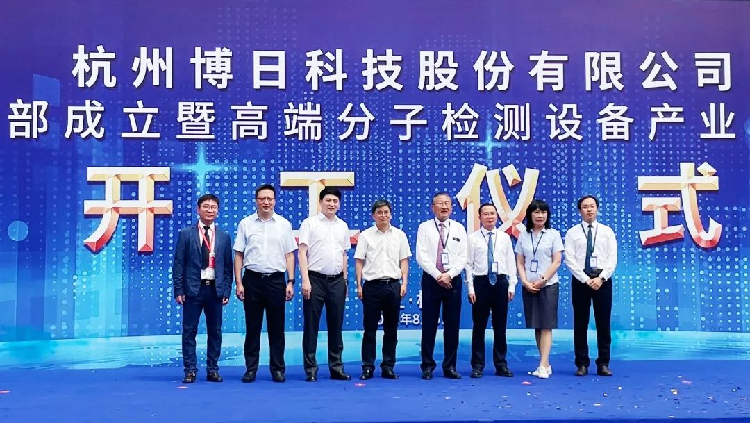 驕陽(yáng)似火,天朗氣清,桂花飄香杭城。8月5日上午10點(diǎn)18分,杭州博日科技股份有限公司總部成立暨高端分子檢測(cè)設(shè)備產(chǎn)業(yè)基地開(kāi)工儀式在杭州市高新(濱江)區(qū)隆重舉行。浙江省疾控中心副主任、黨委書(shū)記胡崇高先生,濱江區(qū)委副書(shū)記、區(qū)長(zhǎng)鄭迪先生,杭州濱江區(qū)委常委、副區(qū)長(zhǎng)陶峰先生,博日科技董事長(zhǎng)賀賢漢先生,浙江宏擇建設(shè)工程有限公司董事長(zhǎng)王偉先生,濱江區(qū)經(jīng)信、發(fā)改、規(guī)資局等各部門(mén)領(lǐng)導(dǎo)以及博日客戶嘉賓等150余人出席活動(dòng)。