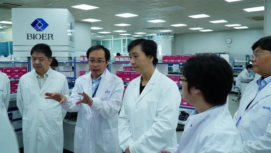 2022年8月17日,浙江省副省長(zhǎng)王文序、杭州市人民政府副市長(zhǎng)胡偉、浙江省藥品監(jiān)督管理局局長(zhǎng)徐潤龍、省政府辦公廳三處處長(zhǎng)葉菲、浙江省藥監(jiān)局醫(yī)療器械處副處長(zhǎng)余曉芬、杭州市市場(chǎng)監(jiān)督管理局副局長(zhǎng)林霄、濱江區(qū)區(qū)長(zhǎng)鄭迪、副區(qū)長(zhǎng)陳健一行考察調(diào)研博日科技,博日科技總經(jīng)理余海、副總經(jīng)理陳芝娟、研發(fā)總監(jiān)李冬及相關(guān)負(fù)責(zé)人陪同。