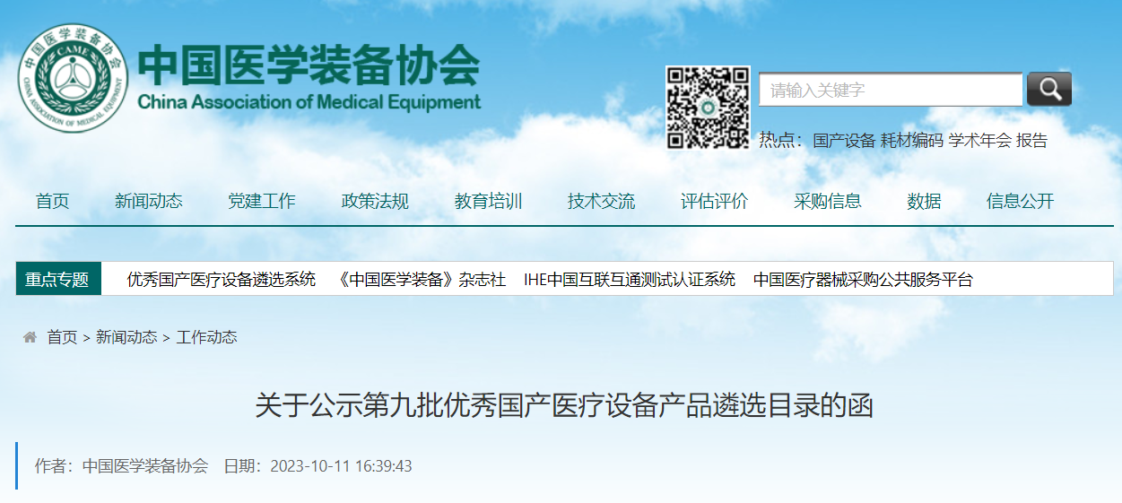 《第九批優(yōu)秀國產(chǎn)醫(yī)療設(shè)備遴選目錄評(píng)審結(jié)果》公示名單