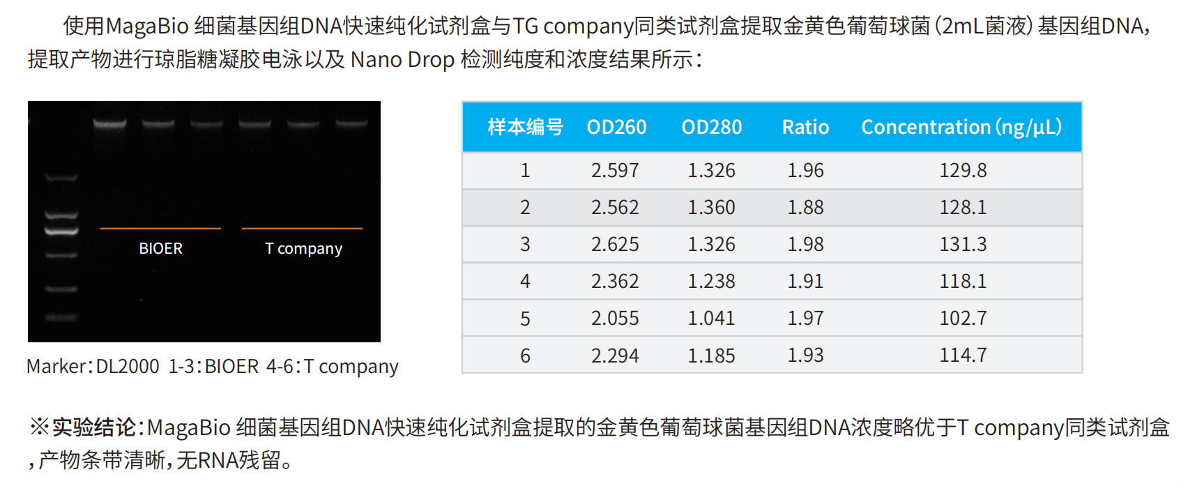 本試劑盒可從各種細(xì)菌樣本(包括革蘭氏陽(yáng)性細(xì)菌和革蘭氏陰性細(xì)菌)中分離出高產(chǎn)量、高純度的DNA。純化的基因組DNA可應(yīng)用于PCR/qPCR、測(cè)序、Southern Blot、Mutant Analysis、SNP等常見(jiàn)分子生物學(xué)實(shí)驗(yàn)。