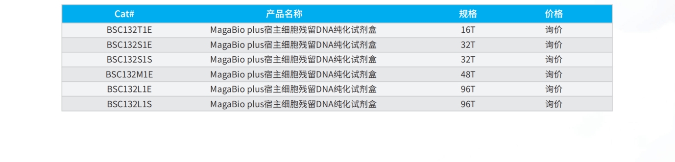 宿主細(xì)胞殘留 DNA 的存在可能對(duì)重組蛋白藥物、單抗藥物及基因治療藥物等部分生物制品的產(chǎn)品質(zhì)量和安全性產(chǎn)生影響。博日MagaBio plus 宿主細(xì)胞殘留DNA純化試劑盒可以高質(zhì)量的分離純化各類(lèi)生物制品宿主細(xì)胞殘留 DNA。純化后的宿主殘留 DNA 可以與殘留 DNA 檢測(cè)試劑盒配合使用,為生物制藥殘留宿主細(xì)胞的濃度控制提供有效的檢測(cè)手段。