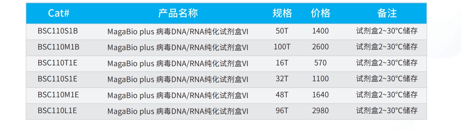 試劑盒是適用于從人源生物樣本中提取高純度的病毒DNA/RNA,如血漿、血清、腹水、尿液、拭子、組織、糞便、痰液、肺泡灌